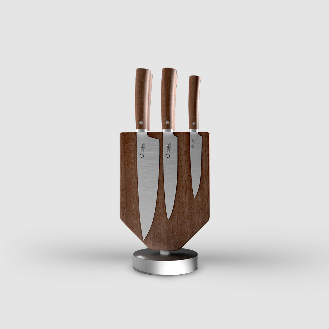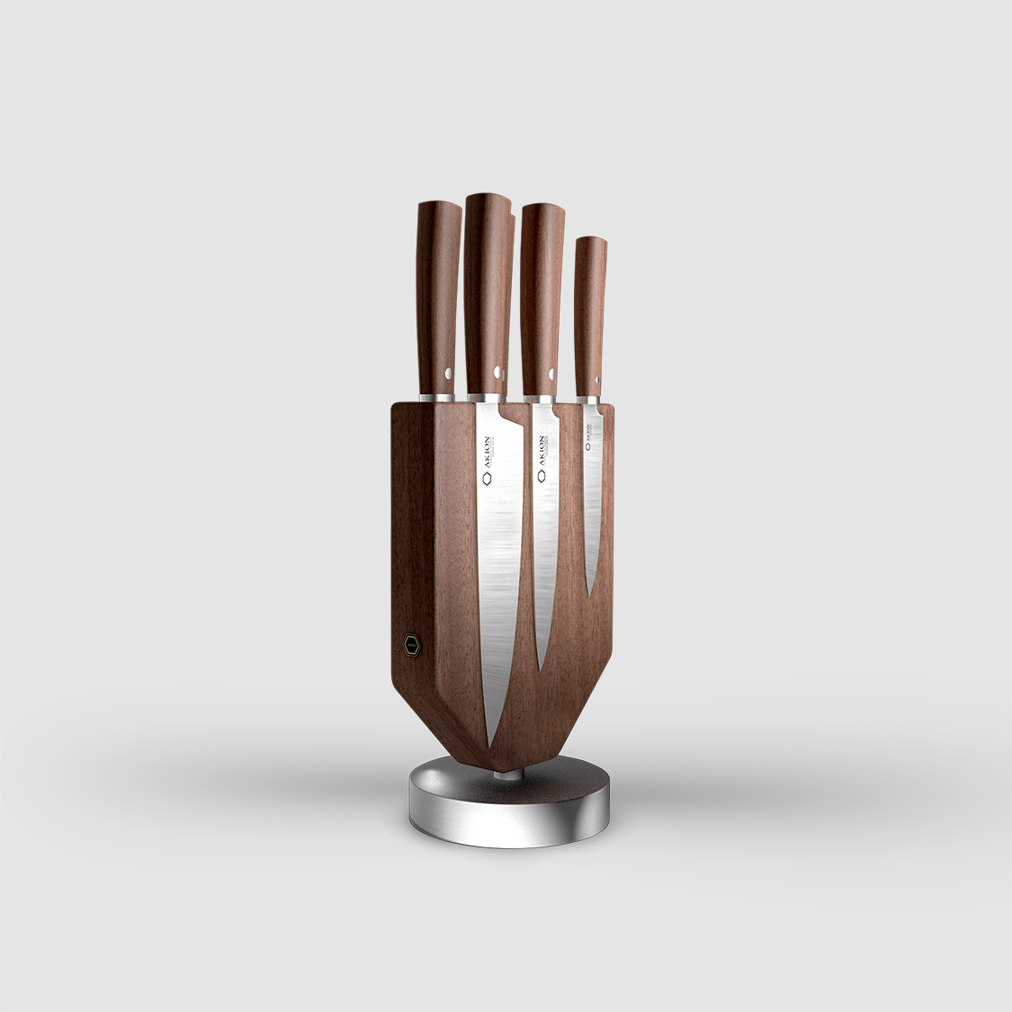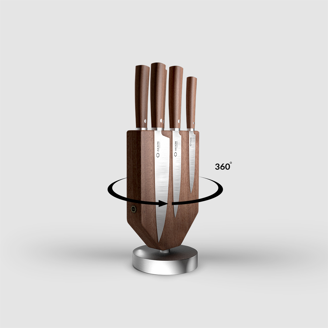 Die einzigartigen Edlen Holzarten interpretieren mit dem runden Aluminium Standfuss und den symmetrisch einzeln angelegten Magneten eine einzigartige 360 Grad drehbare Messerblock Serie für 6 Messer. Die charakteristischen Merkmale der handgefertigten Holzblöcke formen jeden Messer-Block zu einem Unikat.